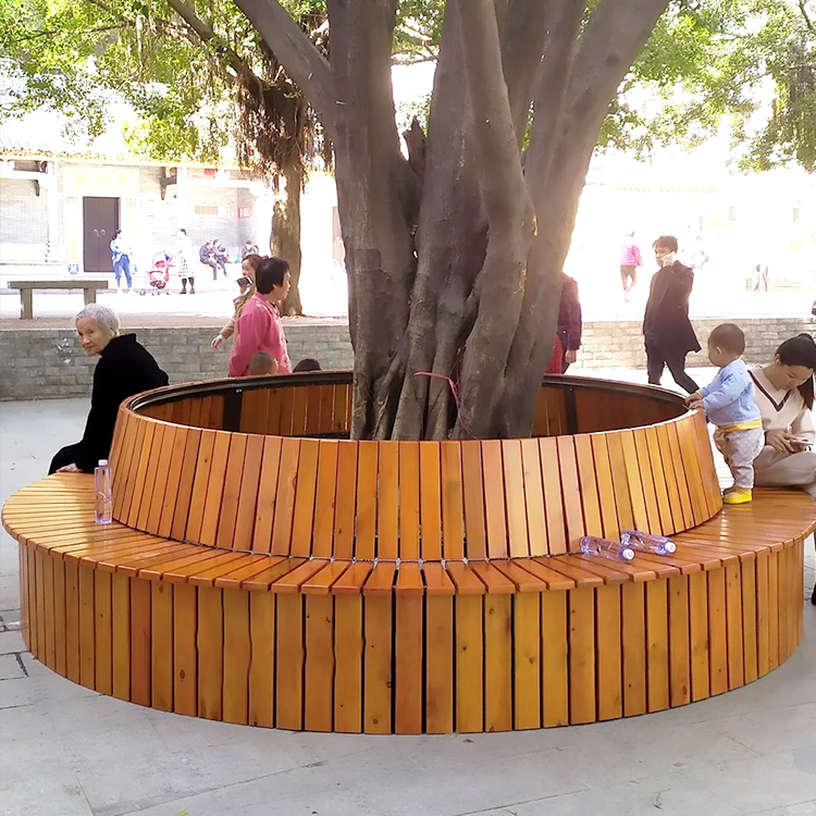 围树椅系列成为爆款产品,贴合树干曲线的环形设计既保护根系生长,又通过 45° 微倾靠背提升舒适度,木质纹理与金属骨架的碰撞形成独特视觉层次。模块化设计则实现灵活组合,单模块独立使用或多模块拼接成长排,适配不同场地的空间布局,轻松应对人群聚集或分散休憩的场景切换。